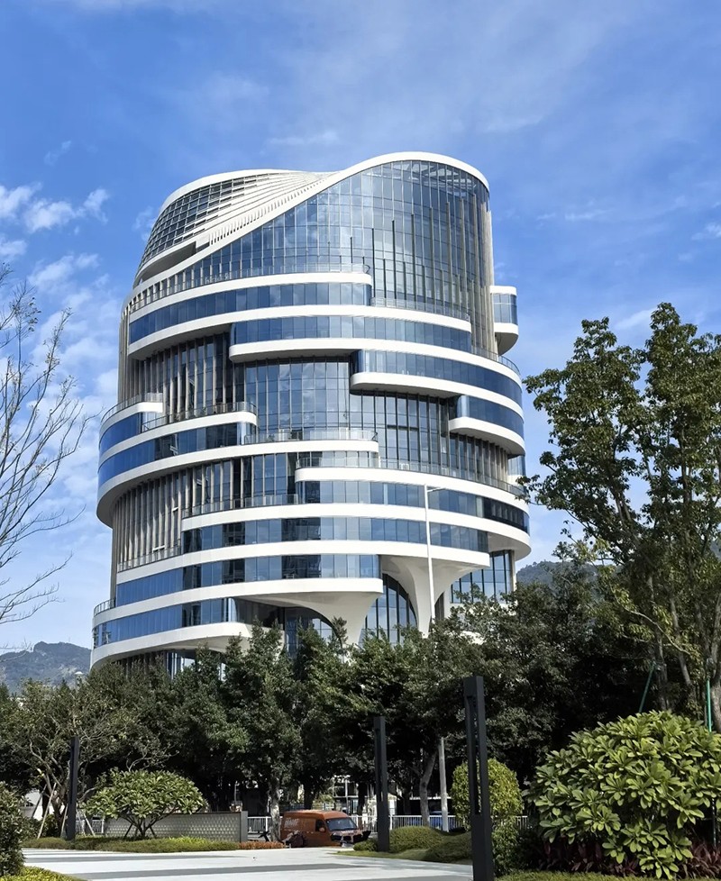 項目集辦公、公共商業(yè)復合空間、員工配套服務中心等多種功能于一體,在設計理念上,大廈巧妙融入了福州特色地域文化,以“神奇榕樹屋”為設計藍本,將福州市樹“榕樹”的骨骼脈絡作為核心筒的設計靈感,呼應了榕樹粗大的樹干。建筑平面則類似榕樹的分支,眾多戶外露臺形似榕樹的巨大樹冠,營造出一種通透、靈動的視覺感受。