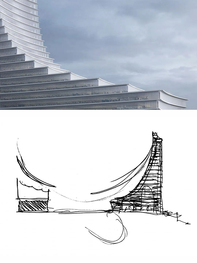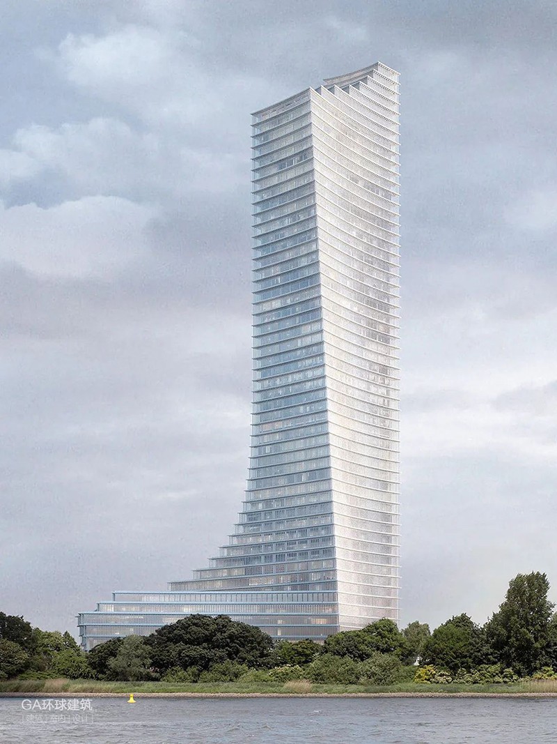 塔樓坐落于漢堡港城河畔,與易北愛樂廳遙相呼應(yīng),集辦公、零售、酒店及公共空間于一體。