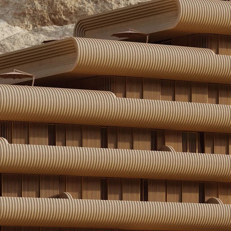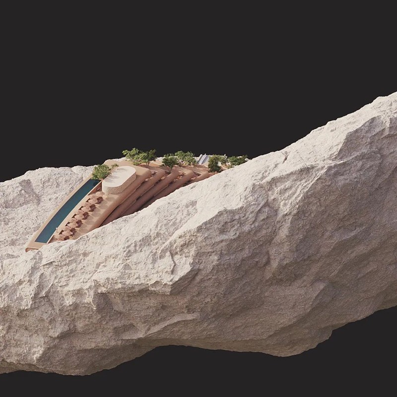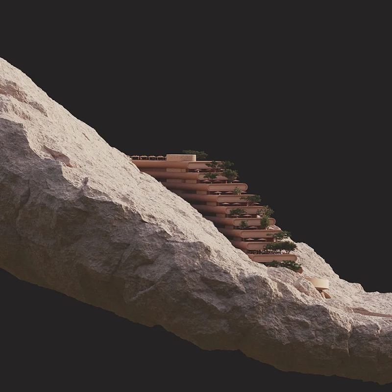 依山而建,靜隱自然一座向上攀升的建筑