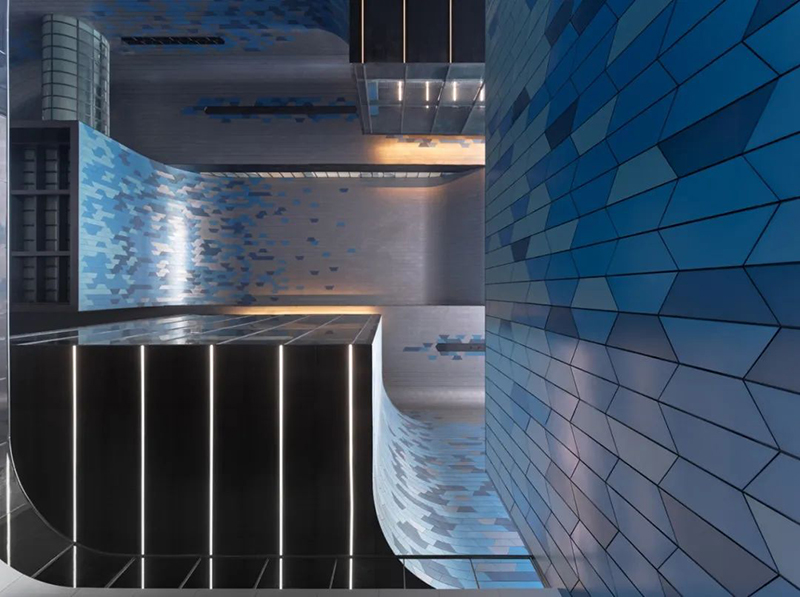 為適應(yīng)深圳亞熱帶氣候特點(diǎn),科技館采用了多項(xiàng)前沿的可持續(xù)設(shè)計(jì)策略。建筑外立面創(chuàng)新性地運(yùn)用雙色I(xiàn)NCO不銹鋼表皮系統(tǒng)(國(guó)內(nèi)首次大規(guī)模應(yīng)用),不僅呈現(xiàn)出獨(dú)特的金屬質(zhì)感漸變效果,更具備優(yōu)異的耐腐蝕和自清潔性能。通風(fēng)腔體立面與屋頂光伏系統(tǒng)的組合,有效降低了建筑能耗。此外,項(xiàng)目還引入了雨水回收系統(tǒng),并在建設(shè)過(guò)程中使用了近39萬(wàn)噸可回收建材,充分體現(xiàn)了綠色建筑理念。