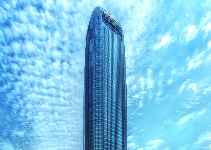 東景五星級酒店及辦公樓項目位于貴陽市觀山湖區,基地東鄰貴陽市行政中心,北鄰鋁鎂設計院,南鄰貴州移動指揮調度中心,西向陽森房產,地塊基本呈矩形,項目總用地面積24966平方米,總建筑面積99284平方米,其中地下建筑面積41915平方米。地上建筑面積共57369平方米,地下部分共計4層,為停車庫及酒店配套用房。地上部分由一棟結構總高64.4m的14層辦公樓和一棟結構總高68.8m的16層酒店組成,兩棟塔樓平面呈L型布置,結構形式均為現澆框架剪力墻結構,辦公樓頂部采用鋼結構向外懸挑兩層,懸挑跨度為11.1m。辦公樓和酒店在頂部通過跨度為30m鋼結構連接體相連,連接體在辦公樓側與混凝土柱鉸接相連,在酒店一側用滑移支座相連,滑移支座接罕遇地震下兩座單體最不利彈性位移進行設計,保證兩個單體在罕遇地震下不致相撞或脫開。