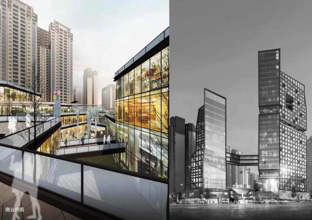 以商業Mall、步行街、優質教育平臺、酒店寫字樓、院線、大型超市等城市綜合體元素帶動北部區域商業、居住升級。