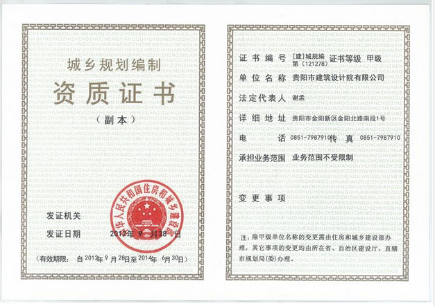 城鄉資質證書